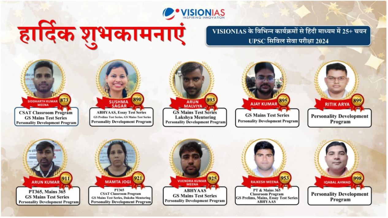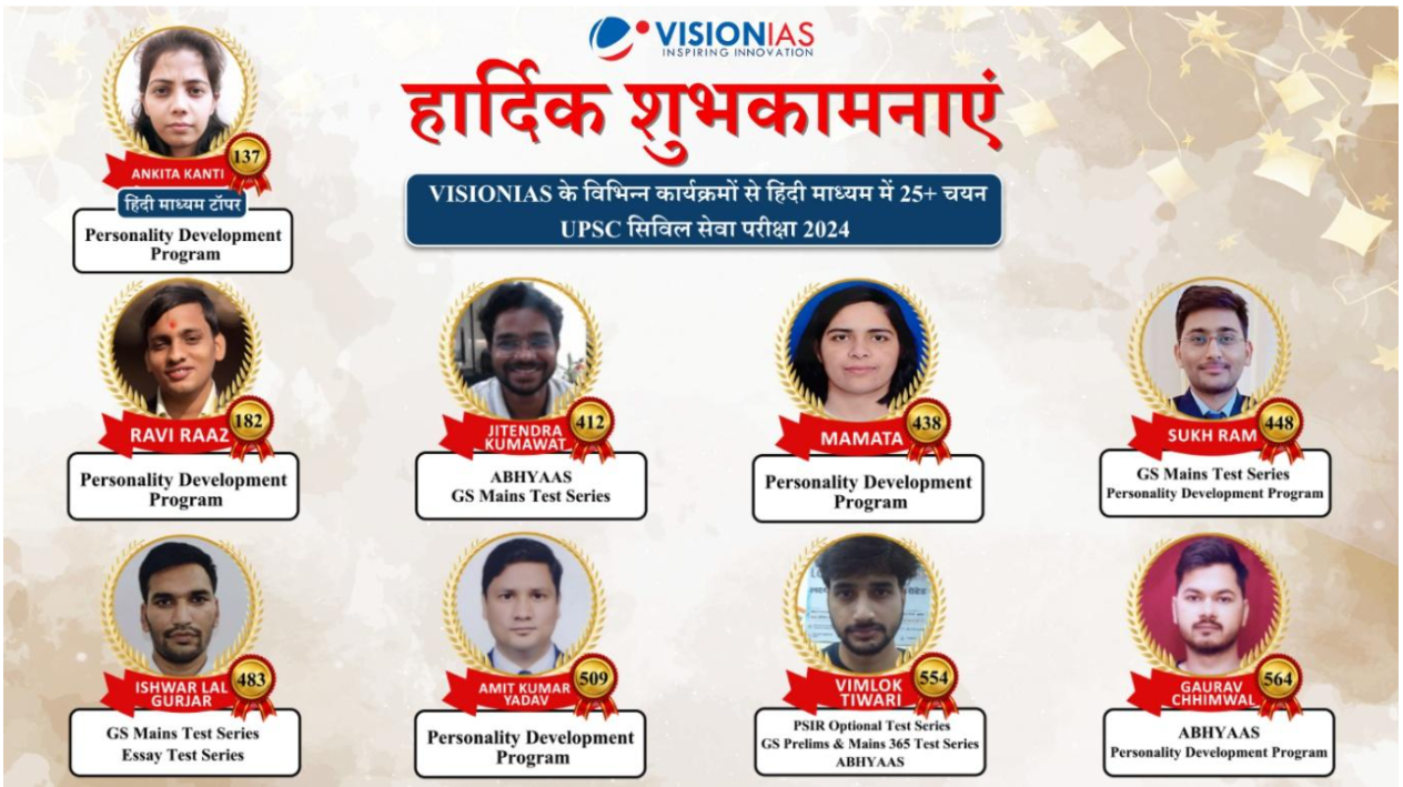 UPSC CSE 2025 की तैयारी कर रहे छात्रों को इन बातों को अपनी पढ़ाई में शामिल करना चाहिए और दृढ़ता से आगे बढ़ना चाहिए। क्योंकि UPSC में सफलता भाग्य से नहीं, बल्कि “सुनियोजित कठिन परिश्रम, समय एवं संसाधनों के उचित प्रबंधन और दृढ़ संकल्प” से मिलती है।