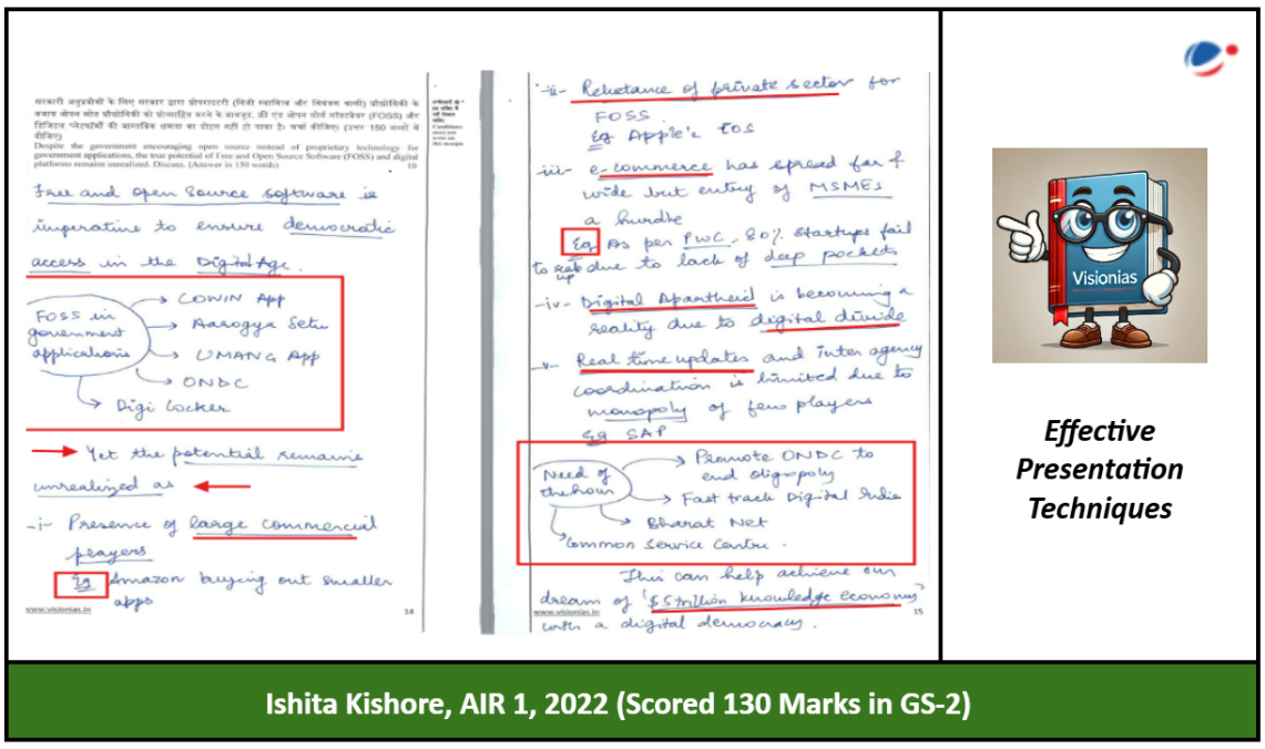 Ishita Kishore, AIR-1 in UPSC 2022, demonstrated this skill with finesse. Scoring an impressive 130 marks in GS-II, her answers reflect a harmonious blend of strategic thinking, conceptual clarity, and impactful presentation. Ishita’s approach wasn’t about lengthy narratives; it was about addressing the question’s core demand while staying rooted in facts and logic.