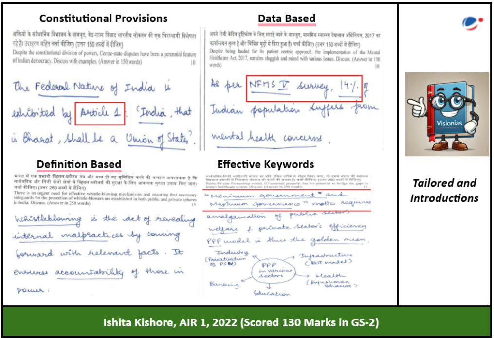 Ishita Kishore’s introductions are varied and purposeful, tailored to the demands of the question. She uses a range of techniques, including constitutional provisions, data, contextual analysis, definitions, and impactful keywords, to craft engaging and relevant openings.