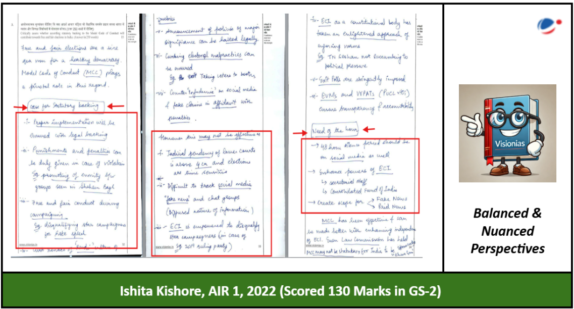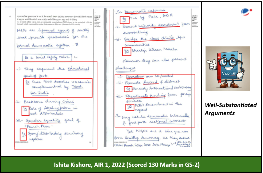 Insight : This approach demonstrates the value of concise, well-supported arguments. Substantiating each point with relevant facts and examples enhances credibility, precision, and alignment with UPSC’s answer-writing expectations.