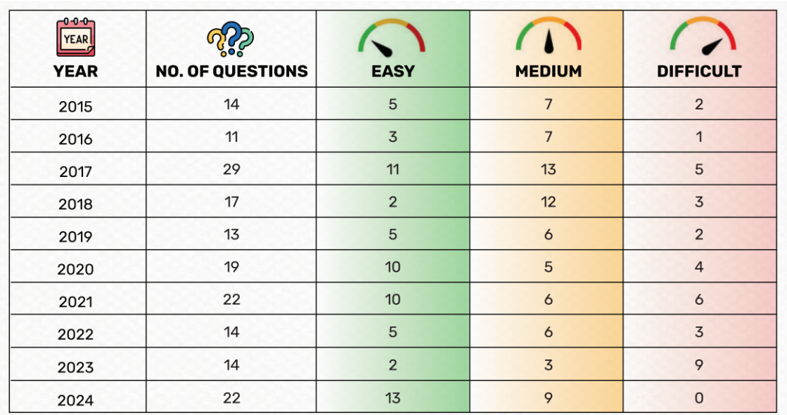 Yearwise breakup of Polity questions in UPSC Prelims (2015-24)