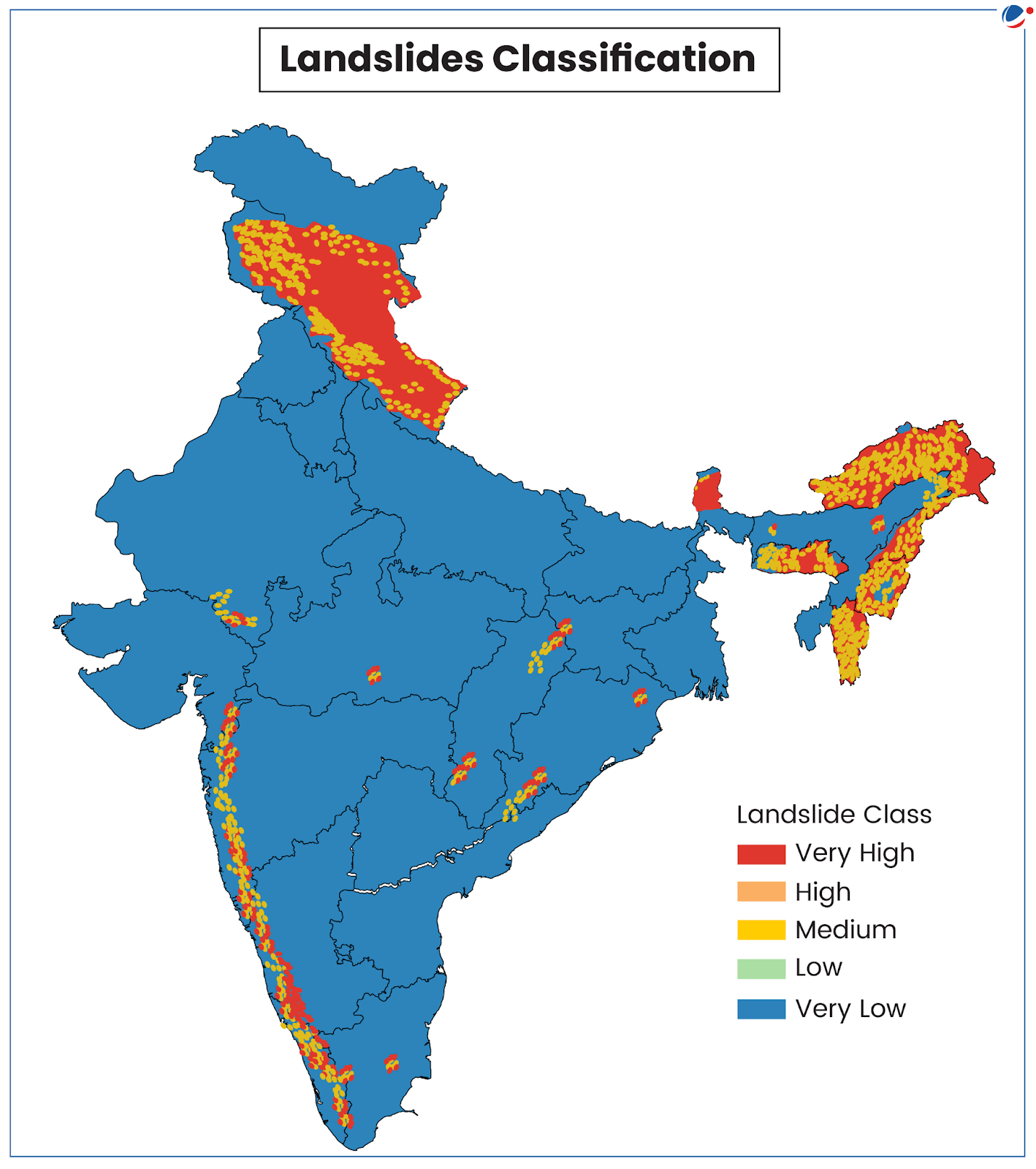 Ans. 12.6% of India’s land area is prone to landslide hazards, with over three-fourths located in the Himalayan region.