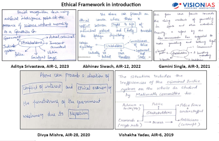 Insights from toppers’ answer scripts such as Aditya Srivastava (AIR-1, 2023), Ishita Kishore (AIR-1, 2022), Gamini Singla (AIR-3, 2021), Shubham Kumar (AIR-1, 2020), Vishakha Yadav (AIR-6, 2019) among others can provide valuable guidance in refining your own answers.