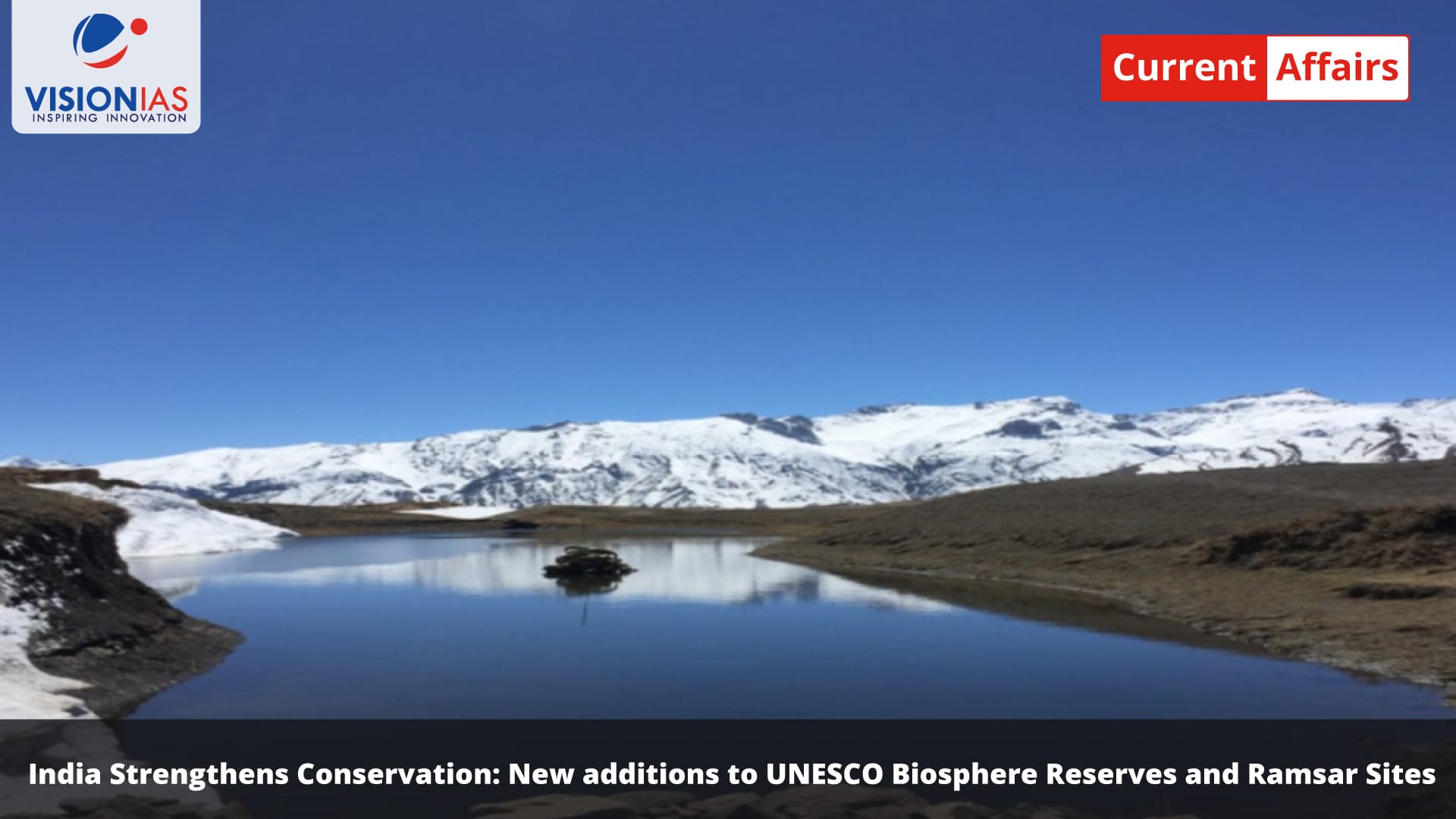 The Cold Desert Biosphere Reserve of India joined the UNESCO network. Additionally, India’s total number of Ramsar sites has risen to 93 following the addition of two new sites, Gokul Jalashay and Udaipur Jheel.