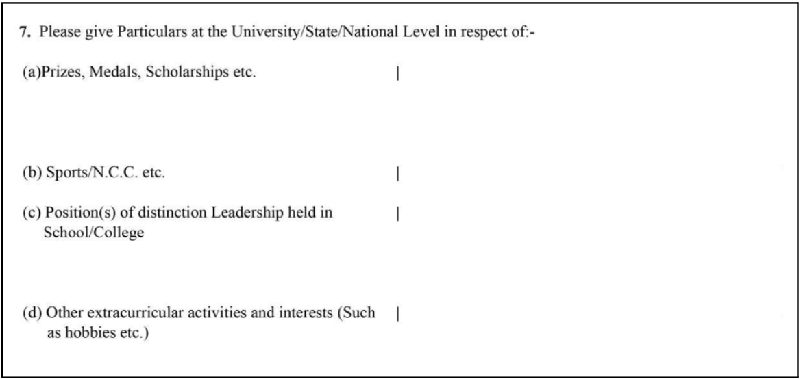Particulars: Prizes, Sports, Leadership and Extracurricular Activities