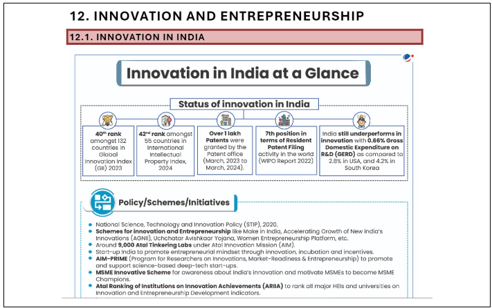 To answer this question comprehensively, blend information from the Mains 365 Economy section on Innovation in India, the Monthly Magazine March 2024 article on Patents, and the Monthly Magazine May 2024 section on the Treaty on Intellectual Property, Genetic Resources and Associated Traditional Knowledge.