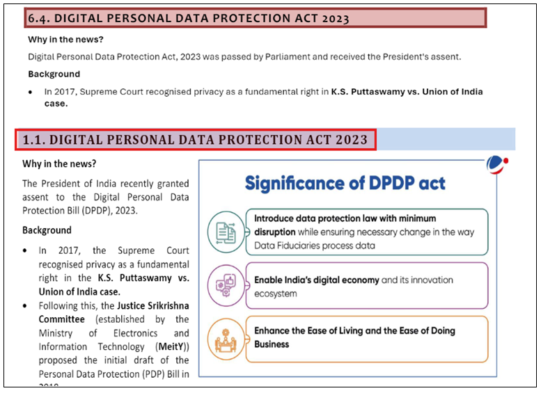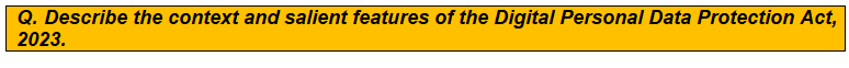 Combine insights from the Mains 365 Polity section on Digital Personal Data Protection Act 2023 and the August 2023 Monthly Magazine article on Digital Personal Data Protection Act 2023.