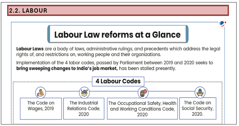 Refer to the Mains 365 Economy section on Labour for a comprehensive understanding of the labour codes and recent developments.