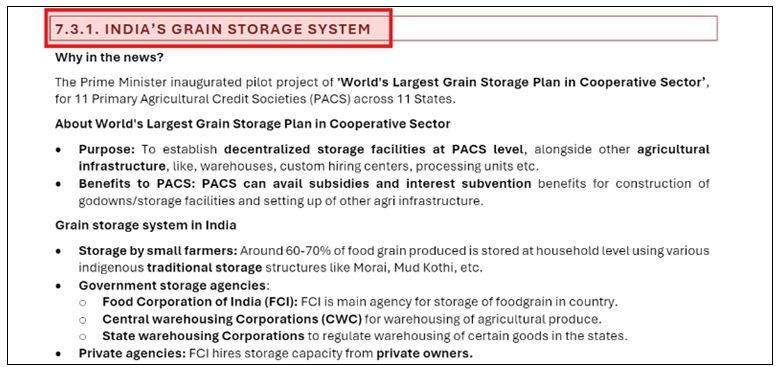 Consult the Mains 365 Economy section on India’s Grain Storage System for a comprehensive answer.