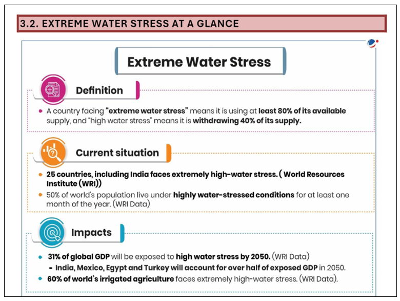 Refer to the Mains 365 Environment section on Extreme Water Stress at a Glance for insights on water scarcity and potential solutions.