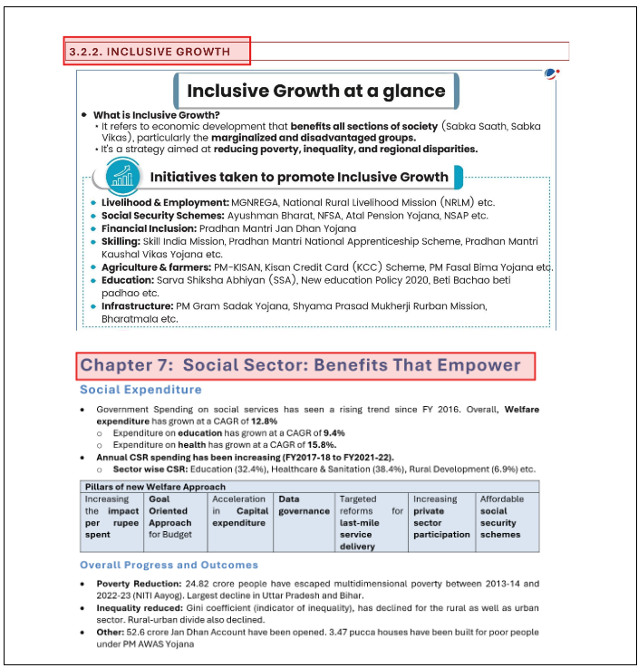 This question draws from recent developments related to inclusive growth, as covered in the VisionIAS Main365 and the explanation related to the Economic Survey- Chapter 7 focusing on the Social Sector.