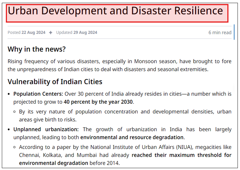 Refer to the Monthly Magazine July 2024 article on Urban Development and Disaster Resilience for a comprehensive answer.