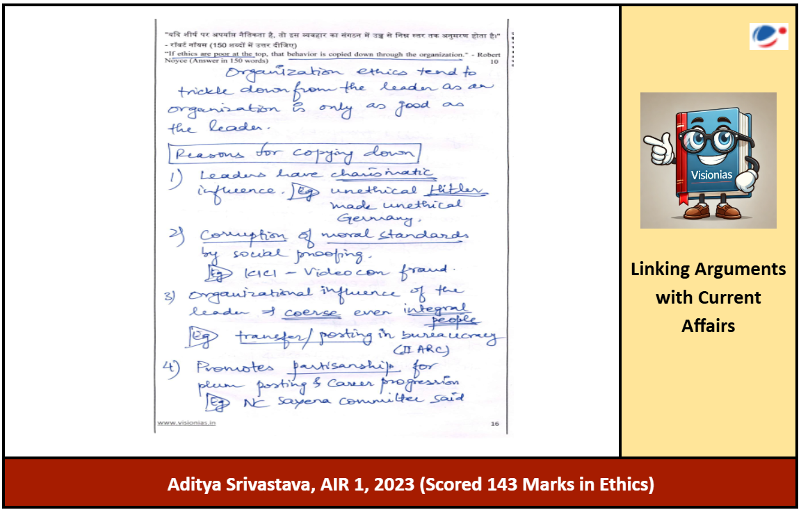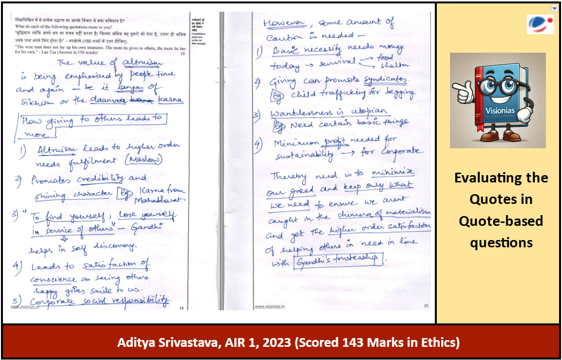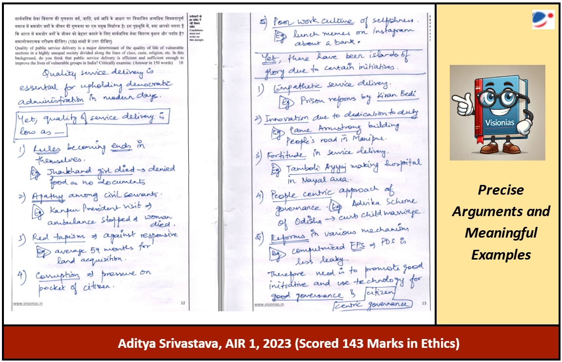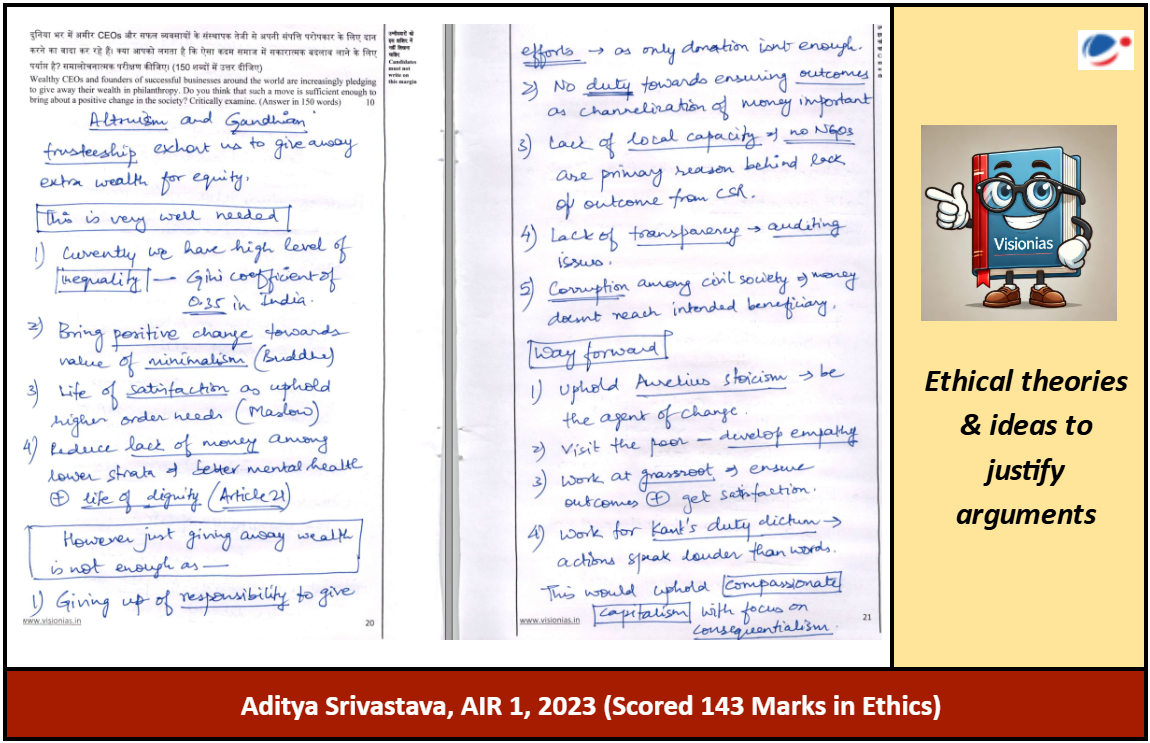 The next key quality from Aditya Srivastava’s Ethics answers is his focus on precision—his arguments are concise, impactful, and well-supported. Instead of over-explaining or being verbose, he carefully crafts his answers to align with the question’s demand. His use of relevant, real-world examples ensures that his arguments are substantiated and resonate with clarity.