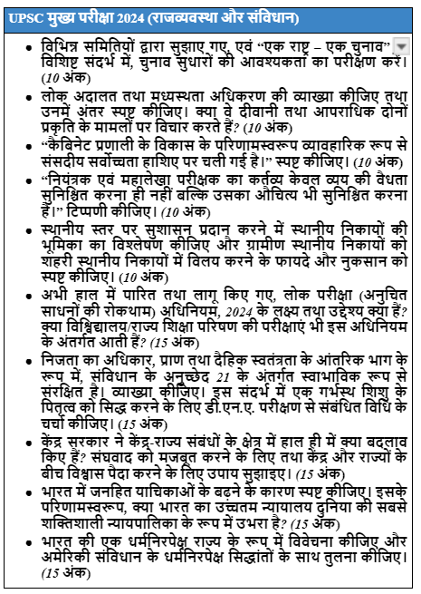 UPSC GS Mains 2024 राजव्यवस्था और शासन पर विश्लेषण एवं चर्चा देखें