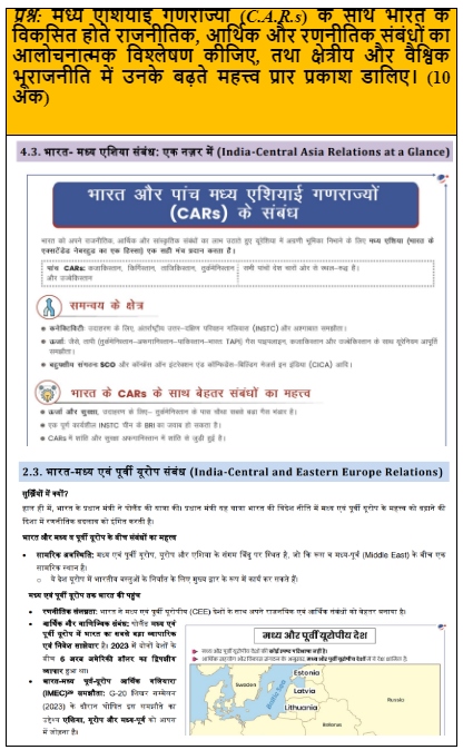 - वैश्विक समूह: QUAD, SCP और BIMSTEC जैसे संगठनों के साथ भारत की भागीदारी, उनके भू-राजनीतिक और आर्थिक महत्व को दर्शाती है, जिसकी जांच अक्सर UPSC द्वारा की जाती रही है। मध्य एशियाई गणराज्यों (CARS) के साथ भारत का बढ़ता रणनीतिक महत्व 2024 में एक प्रमुख फोकस था, जिसने उनकी भू-राजनीतिक प्रासंगिकता पर जोर दिया है।