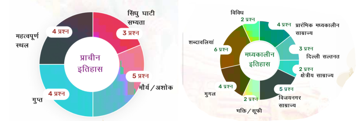 • दिल्ली सल्तनत, मुगल साम्राज्य, भक्ति एवं सूफी आंदोलन, और विजयनगर साम्राज्य जैसे टॉपिक्स लगातार प्रश्नपत्रों में आते रहे हैं।