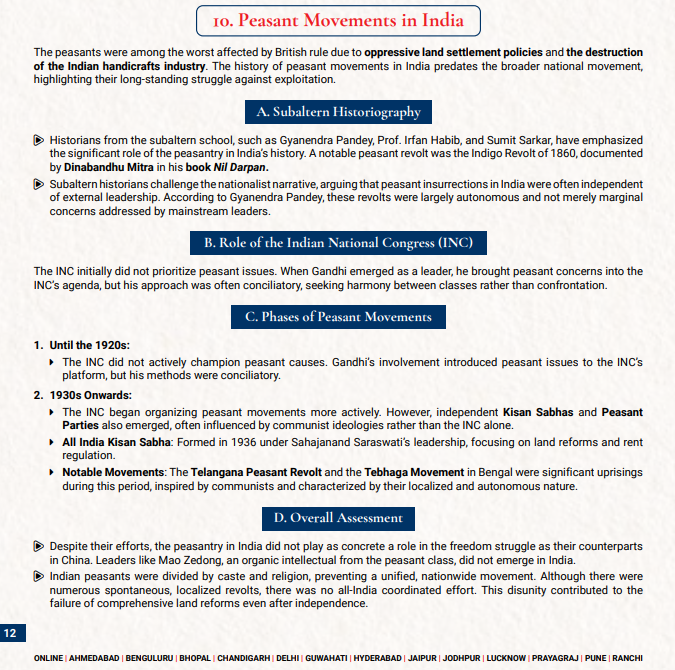 Q: Differentiate between the character of peasant movements before and after Gandhi’s entry into the national movement. What explains the shift in their ideological orientation and methods? (Test 3340 6 a )