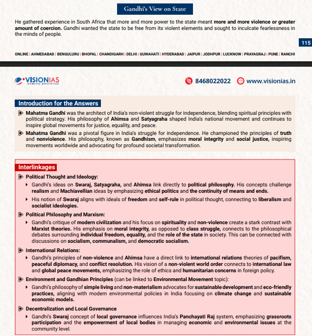 • Gandhi’s View on the State (Q3(b)): This question was expected as views of Gandhi around State are important and this question focused on Gandhi’s unique perspective on the state, asking candidates to explain his critique of both modern and traditional state systems.
