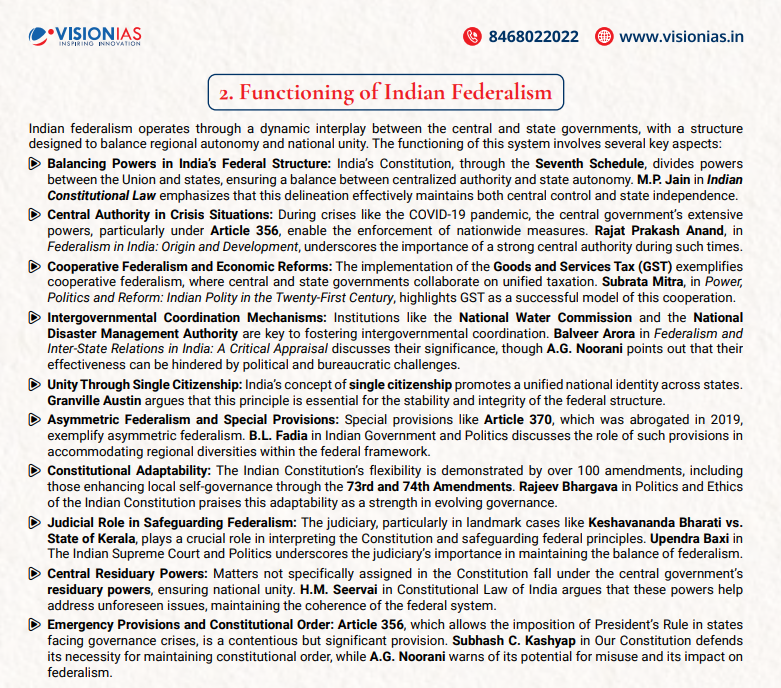 Q. The recent developments in Indian politics has not eroded the true spirit of federalism in India. Critically examine the statement with the help of relevant examples.