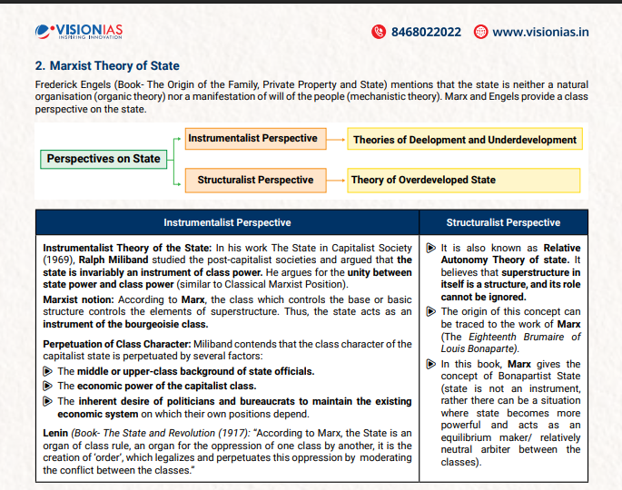 • Vision IAS PSIR Optional Test Series Q: While liberalism views the State as a protector of individual rights, Marxism perceives it as an instrument of class oppression. Analyse. (test 3338 Question 3 (b)