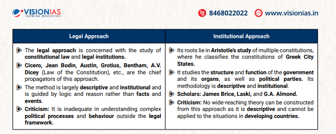 Q. Provide a comparative analysis of behavioural and institutional approaches to study of political theory