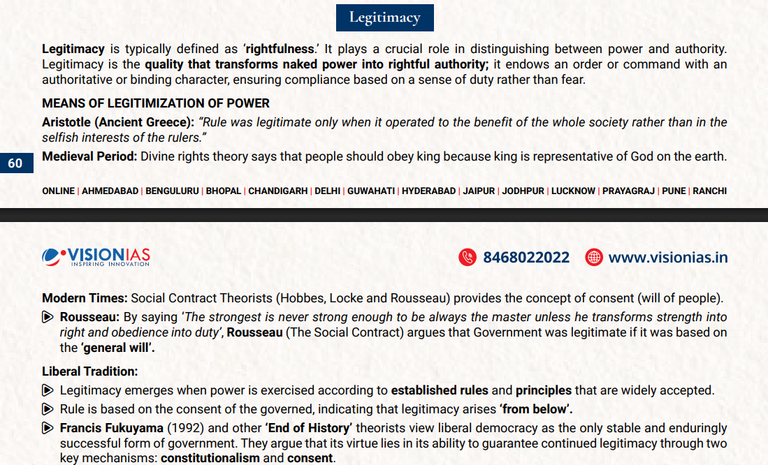 • Legitimacy (Q4(c)): The question on legitimacy required more than a basic explanation; it required the aspirant to critically analyze legitimacy in the context of modern political systems.