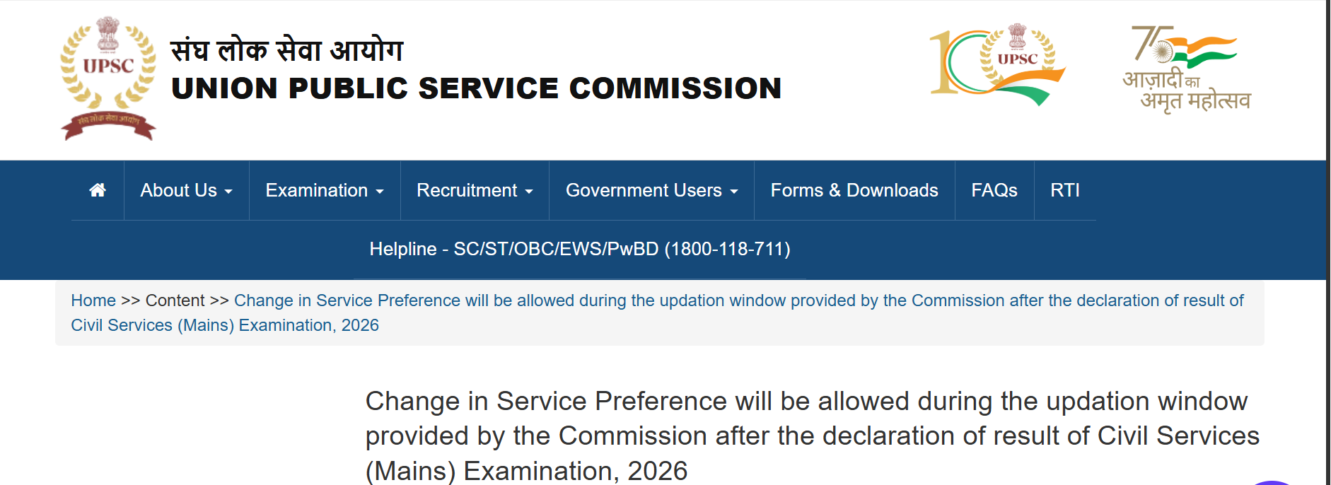 In a significant recent update, UPSC has allowed candidates to change their service preference during the updation window after the declaration of the UPSC Civil Services (Mains) 2026 result.